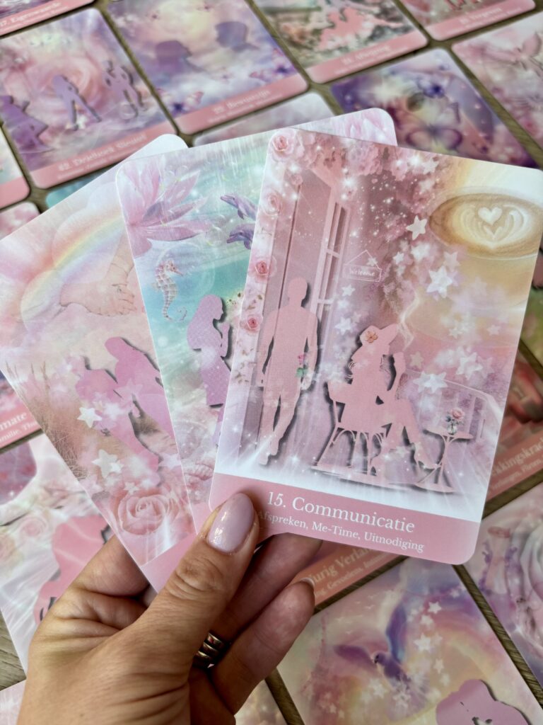 Als klein meisje was ik al betoverd door orakelkaarten, de woorden, de afbeeldingen, de magie die in elk detail verscholen zit. Ik haalde er de mooiste inzichten uit en nu is mijn droom werkelijkheid geworden, een deck dat geboren is uit mijn diepste verlangen om te helen, te voelen en te verbinden. In dit deck schuilt een dubbele missie, het herinnert je aan de liefde voor jezelf, én het opent de poort naar de mensen waarmee jij verbonden bent, zij die met jou afspraken maakten, nog vóór je hier op Aarde kwam.